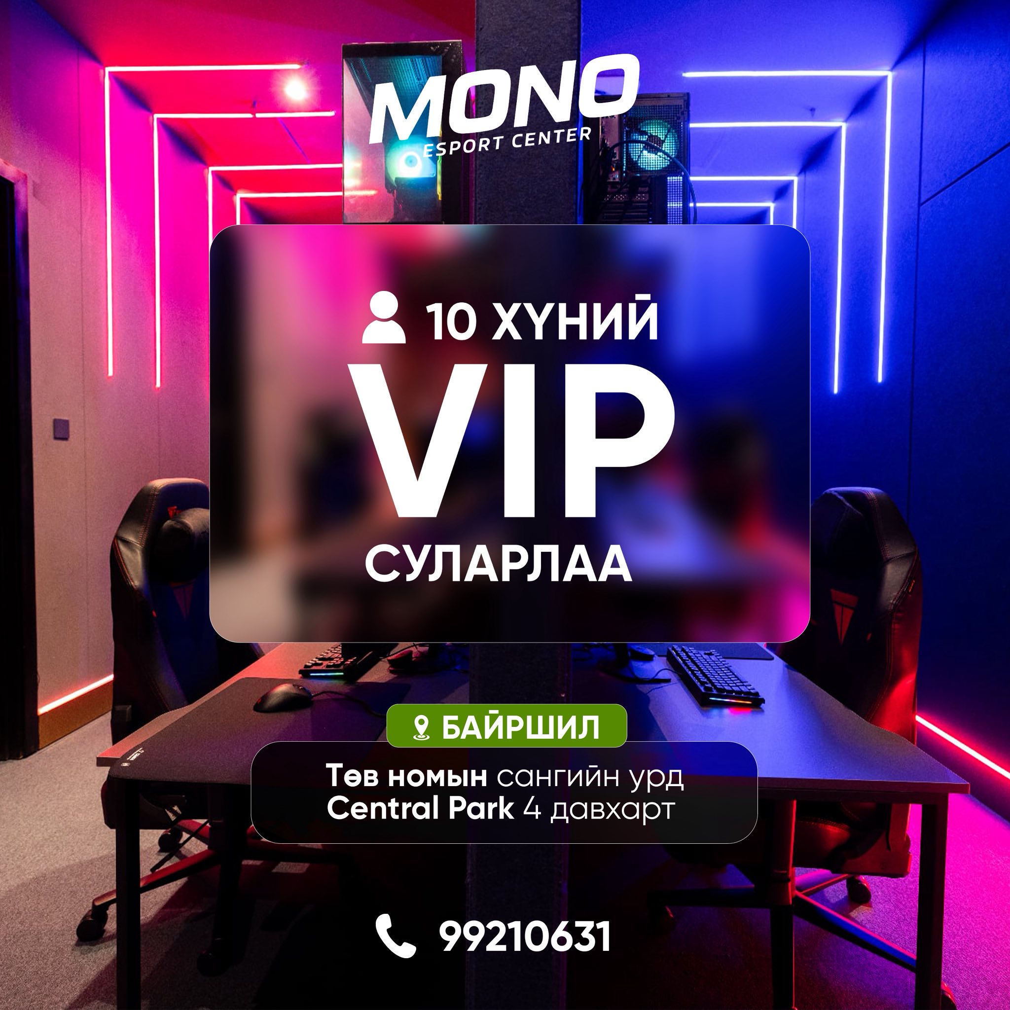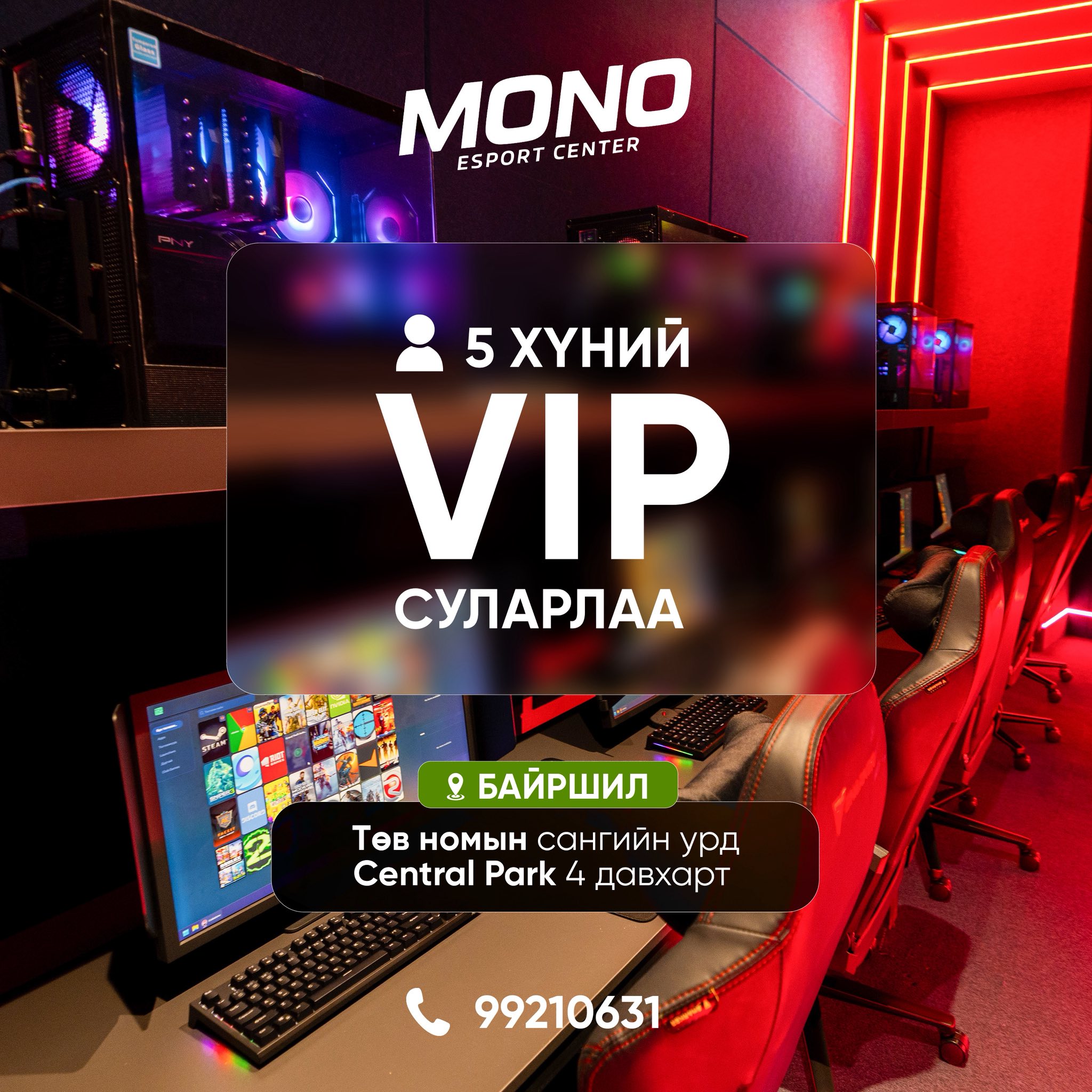 🎮 Манай тоглоомын төв шинээр үүд хаалгаа нээж байна 🔥🔥🔥 🖥️ Өндөр үзүүлэлттэй PC ⚡ Ultra smooth FPS 🪑 Тав тухтай орчин 6 VIP rooms 🤝 Найрсаг хамт олон 🎧 Pro gaming setup 👥 Duo room 😱 Member Account 30.000 төгрөгөөр цэнэглээд 30%, 50.000 төгрөг болон түүнээс дээш цэнэглээд 50% бонус аваарай. 🎁 Цагийн хөнгөлөлт 🎁 Bonus 🎁 Early bird, Nightpass Заалны үзүүлэлт: i5-14400F, 16GB 6000Mhz, RTX 5060, Asus 310Hz VIPs, Duo room: AMD Ryzen 7 7800x3D, 32GB 6000Mhz, RTX 5070, Zowie 400Hz Gear: 🖱️Benq Zowie EC3-C Mouse ⌨️Royal Kludge - R87TKL Mechanical Keyboard 🎧HyperX Cloud 2 Red ATK Sky XSoft Gaming Mousepad Black Sharker Gaming Chair Заал - 1 цагийн 5.000 төгрөг VIP - 1 цагийн 8.000 төгрөг Best VIP - 1 цагийн 10.000 төгрөг (10 хүний өрөө дотроо ариун цэврийн өрөө, тамхины өрөөтэй) Duo room - 1 цагийн 10.000 төгрөг 🌝 Early bird 9:00am - 3:00pm Заал - 1 цагийн 3.000 төгрөг VIP - 1 цагийн 6.000 төгрөг Best VIP - 1 цагийн 8.000 төгрөг 🌚 Nightpass 11:00pm - 8:00am Заал - 20.000 төгрөг VIP - 35.000 төгрөг Best VIP - 40.000 төгрөг Duo room - 40.000 төгрөг 📍Байршил: СБД 1-р хороо Төв номын сангийн урд Central Park 4 давхарт ✨ 📍Google Maps - https://maps.app.goo.gl/MCqCSALx3vrrzYuKA ⏰ Нээлттэй цаг: 24 цаг ☎️ 99210631